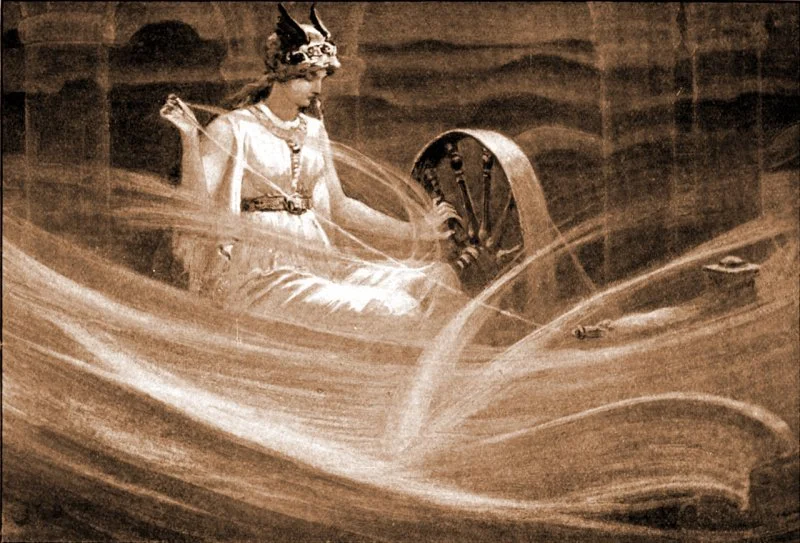 “Frigga Spinning the Clouds,” Guerber, 1909